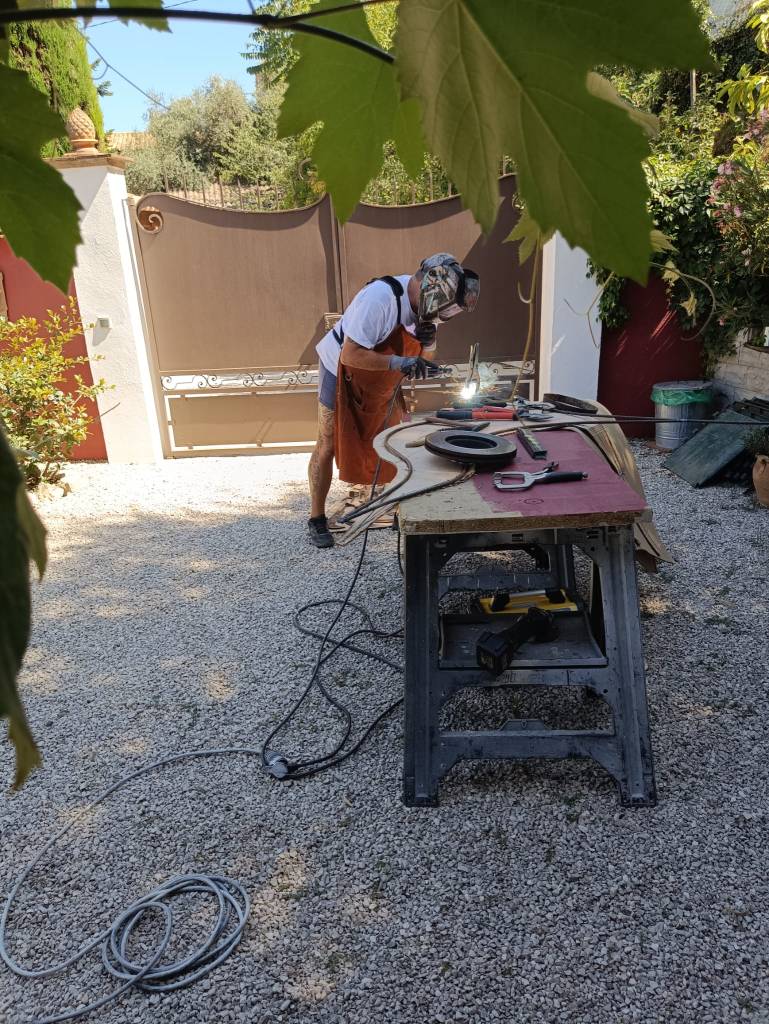 Mon atelier est vraiment trop petit pour travailler a cette sculpture à taille humaine. alors je m’installe dans le jardin.