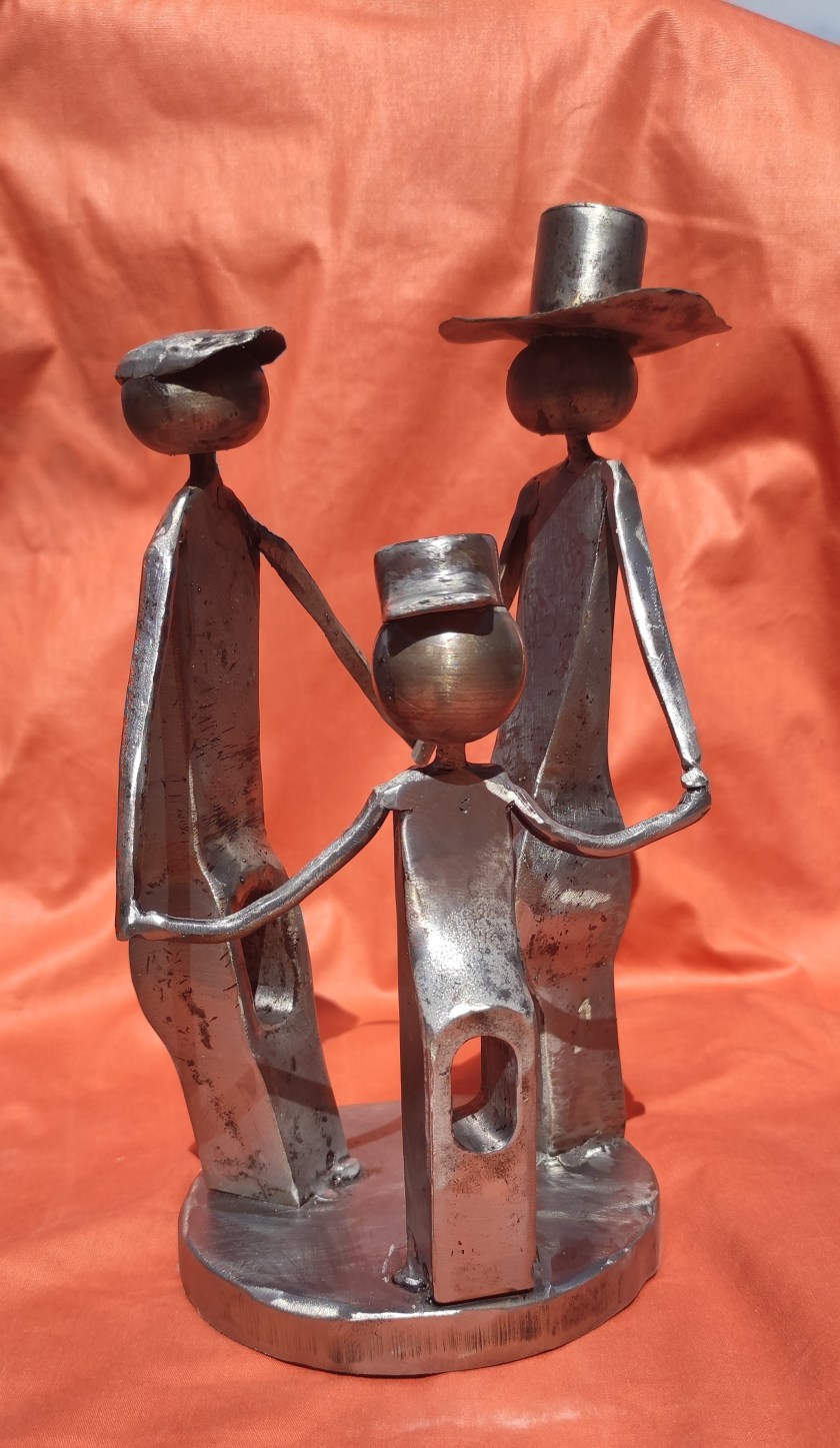 Famille Marteaux réalisée avec différents marteaux, un peu de tôle et du fer lisse de diamètre 6. Billes d’acier diamètre 12 et 14 pour les têtes.